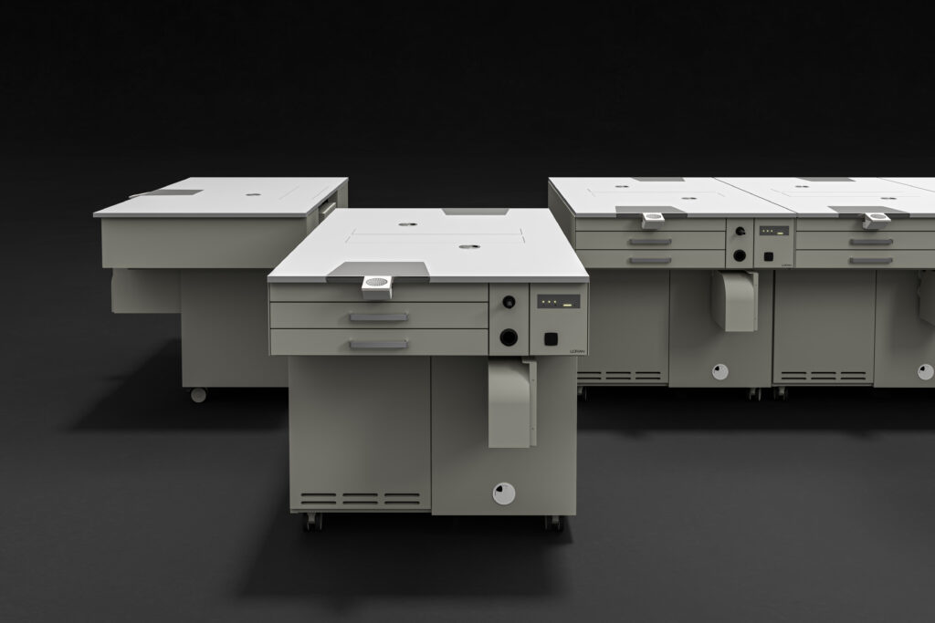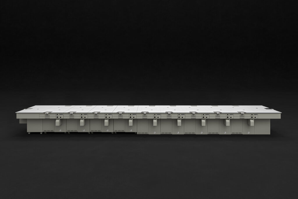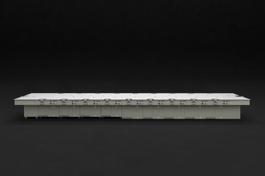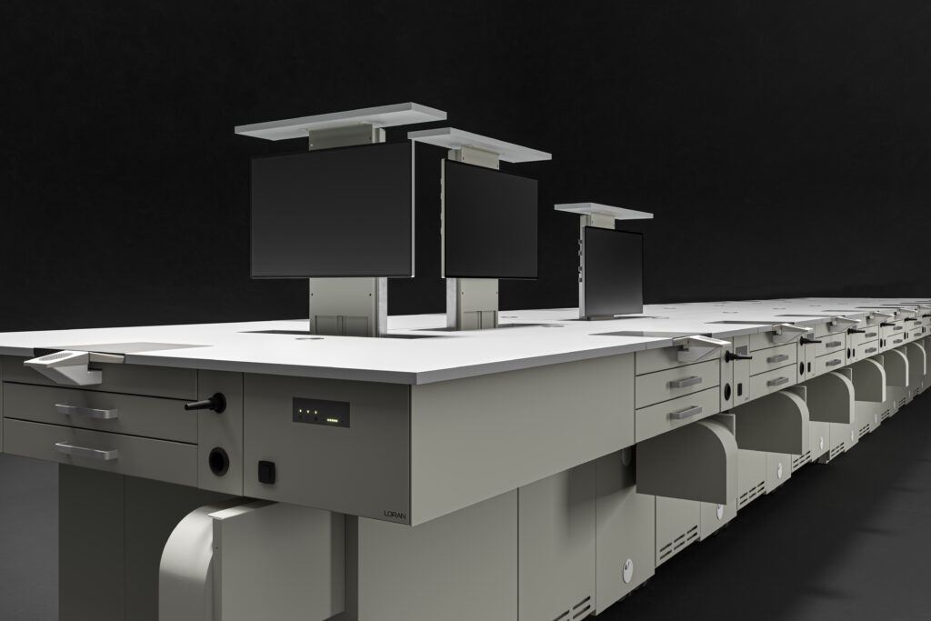 Ogni elemento è progettato per funzionare sia in configurazione singola sia in composizione modulare, con cablaggi integrati e predisposizioni tecniche complete, inclusi schermi e supporti multimediali per corsi e simulazioni.